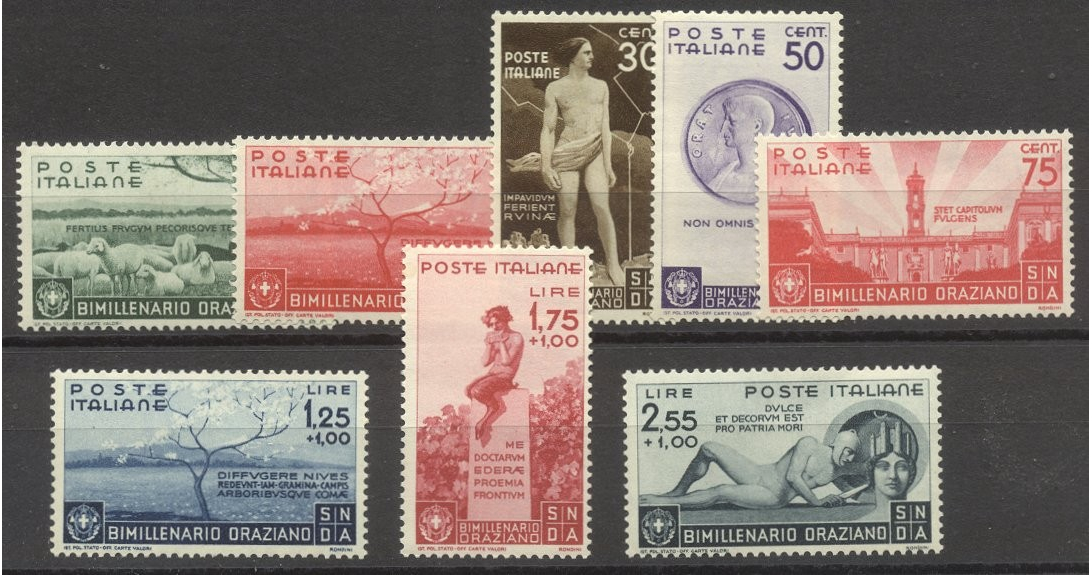 Scott #359-66: 1936 Horace Set Centering & Condition: Mint. Fresh. Very Fine set. Reverse (Gum Side): Original gum. Never Hinged. Faults / Imperfections: None The item pictured is the actual item you are purchasing, unless otherwise noted. I also offer an interest-free layaway plan. Ask me about it!" All items will be mailed a day or two after payment is received. --------------------------------------------------------------------------------