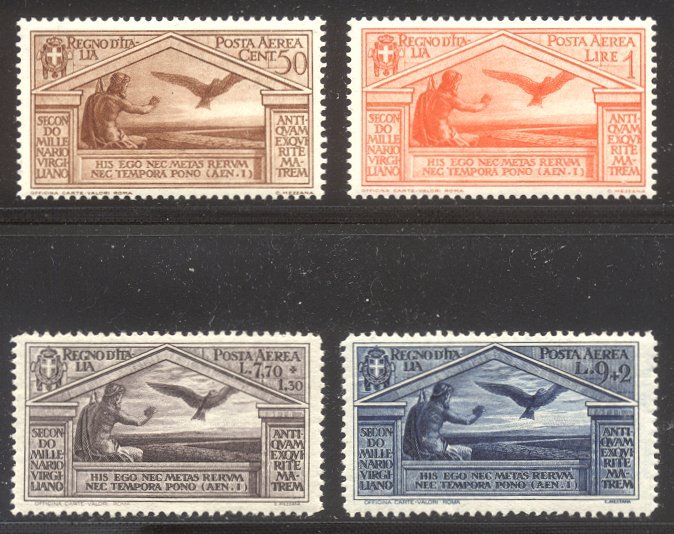 Scott #C23-26: 1930 Virgil Set Set Centering & Condition: Mint. Fresh. Very Fine set. Reverse (Gum Side): Original gum. Never Hinged. Faults / Imperfections: None The item pictured is the actual item you are purchasing, unless otherwise noted. I also offer an interest-free layaway plan. Ask me about it!" All items will be mailed a day or two after payment is received. ![]() ![]() ![]() ![]() ![]() -------------------------------------------------------------------------------- Please click any of the following to read: |