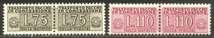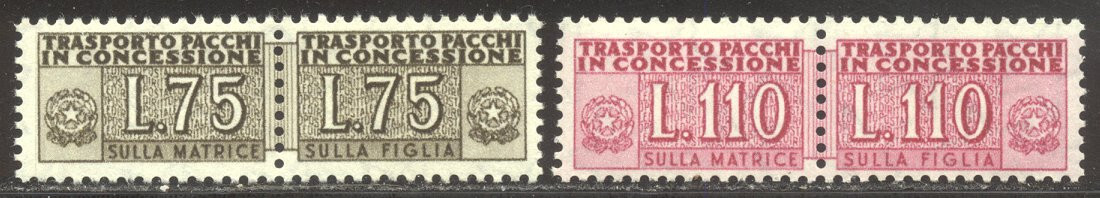 Scott #QY8, 10: 1956 75 l - 110 l Parcel Post Issue, Wmk Stars Centering & Condition: Mint. Fresh. Fine-Very Fine duo. Reverse (Gum Side): Original gum. Never Hinged. Faults / Imperfections: None The item pictured is the actual item you are purchasing, unless otherwise noted. I also offer an interest-free layaway plan. Ask me about it!" All items will be mailed a day or two after payment is received. --------------------------------------------------------------------------------