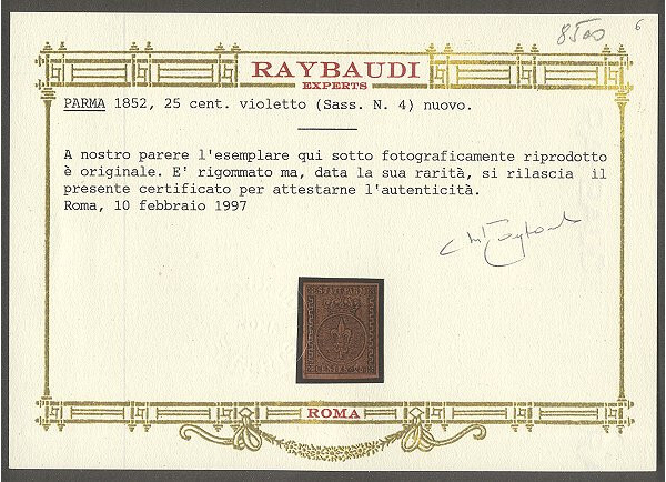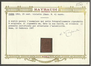 Scott #4: 1852 25c Black on Violet Centering & Condition: Mint. Fresh. Very Fine and VERY RARE. Comes with Reverse (Gum Side): Original gum. Hinged. Faults / Imperfections: There's a tiny spot at lower left which is not noted on either of the certs The item pictured is the actual item you are purchasing, unless otherwise noted. I also offer an interest-free layaway plan. Ask me about it!" All items will be mailed a day or two after payment is received. --------------------------------------------------------------------------------