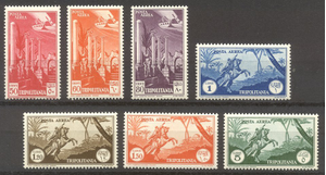 Scott #C8-15 (missing #C10): 1931 Pictorial Set Centering & Condition: Mint. Fresh. Very Fine set missing #C10. Reverse (Gum Side): Original gum. Never Hinged. Faults / Imperfections: None The item pictured is the actual item you are purchasing, unless otherwise noted. I also offer an interest-free layaway plan. Ask me about it!" All items will be mailed a day or two after payment is received. -------------------------------------------------------------------------------- Please click any of the following to read: |