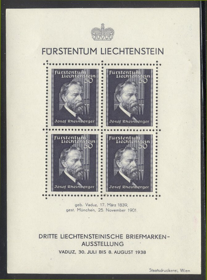 Scott #151: 1938 Rheinberger S/S Centering & Condition: Mint. Fresh. Very Fine sheet. Reverse (Gum Side): Original gum. Never Hinged. Faults / Imperfections: None The item pictured is the actual item you are purchasing, unless otherwise noted. I also offer an interest-free layaway plan. Ask me about it!" All items will be mailed a day or two after payment is received. --------------------------------------------------------------------------------
