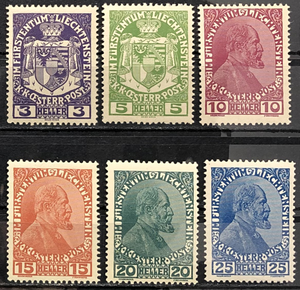Coat of Arms, Prince Johann II, 1917-18. Complete set of 6.