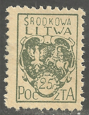 Central Lithuania Scott 2. Unused. No gum. 10.5 perforate.