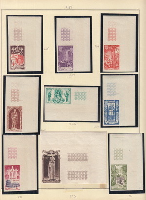 Several stamps are never hinged and hinged on selvage only.
