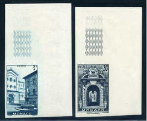 Monaco 274-75, Imperf 1951 Scenic Type, Mint NH, LH in selvage