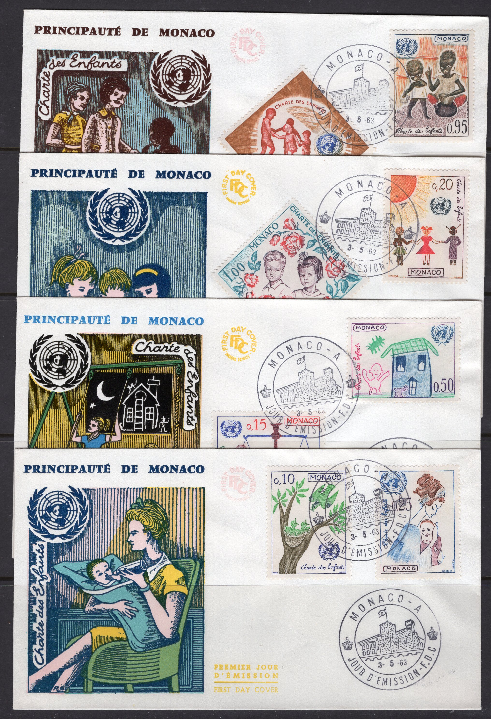 Monaco Scott 528-535. First day of issue covers. 4 covers.
