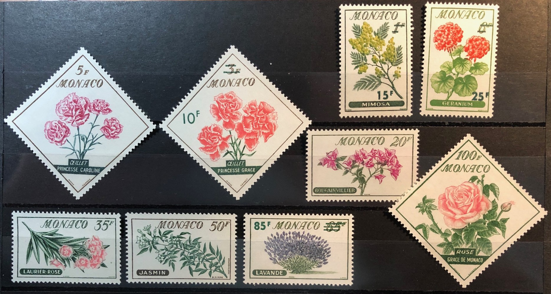 Flowers, 1959. Complete set of 9. Numbers 439, 440, 442, and 445 were not issued without surcharge.