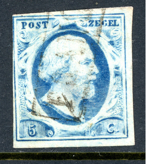 Netherlands 1852 First Issues 5¢ Blue Scott #1 VFU O460