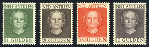 Scott #226-29: 1960 Wilhelminas Centering & Condition: Mint Fresh. Very Fine group of the four high values. Reverse (Gum Side): Original gum. Never Hinged. Faults / Imperfections: None The item pictured is the actual item you are purchasing, unless otherwise noted. I also offer an interest-free layaway plan. Ask me about it!" All items will be mailed a day or two after payment is received. -------------------------------------------------------------------------------- Please click any of the following to read: |