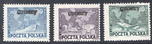 Poland Scott 457-459. Complete set. Mint. Never hinged. Groszy overprint. 3