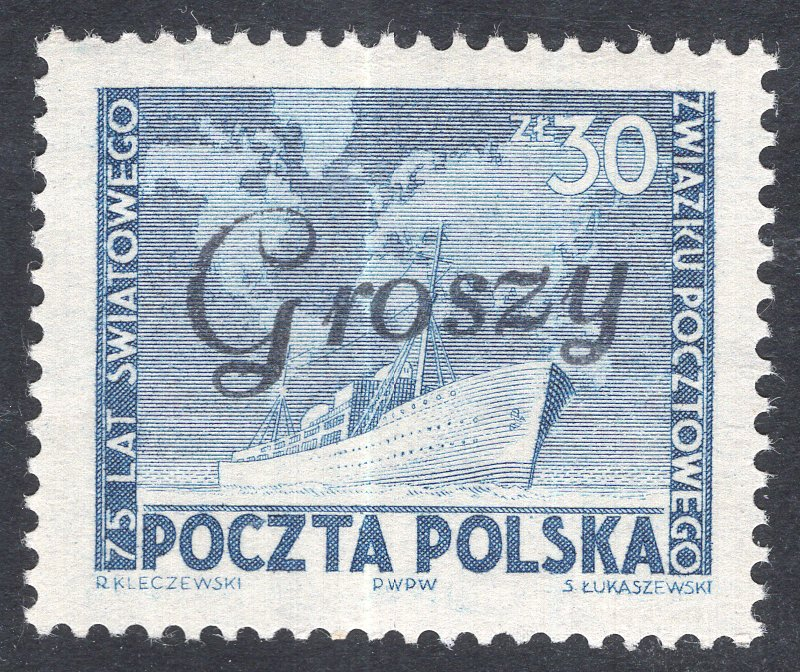 Poland Scott 458. Mint. Never hinged. Groszy overprint. 2
