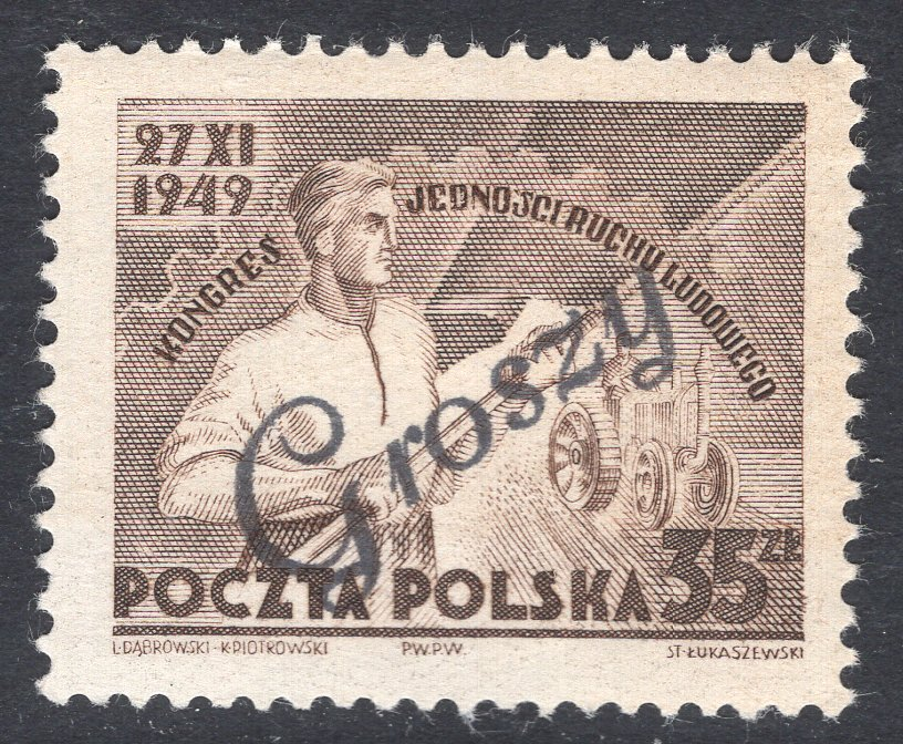 Poland Scott 463. Unused. Groszy overprint.