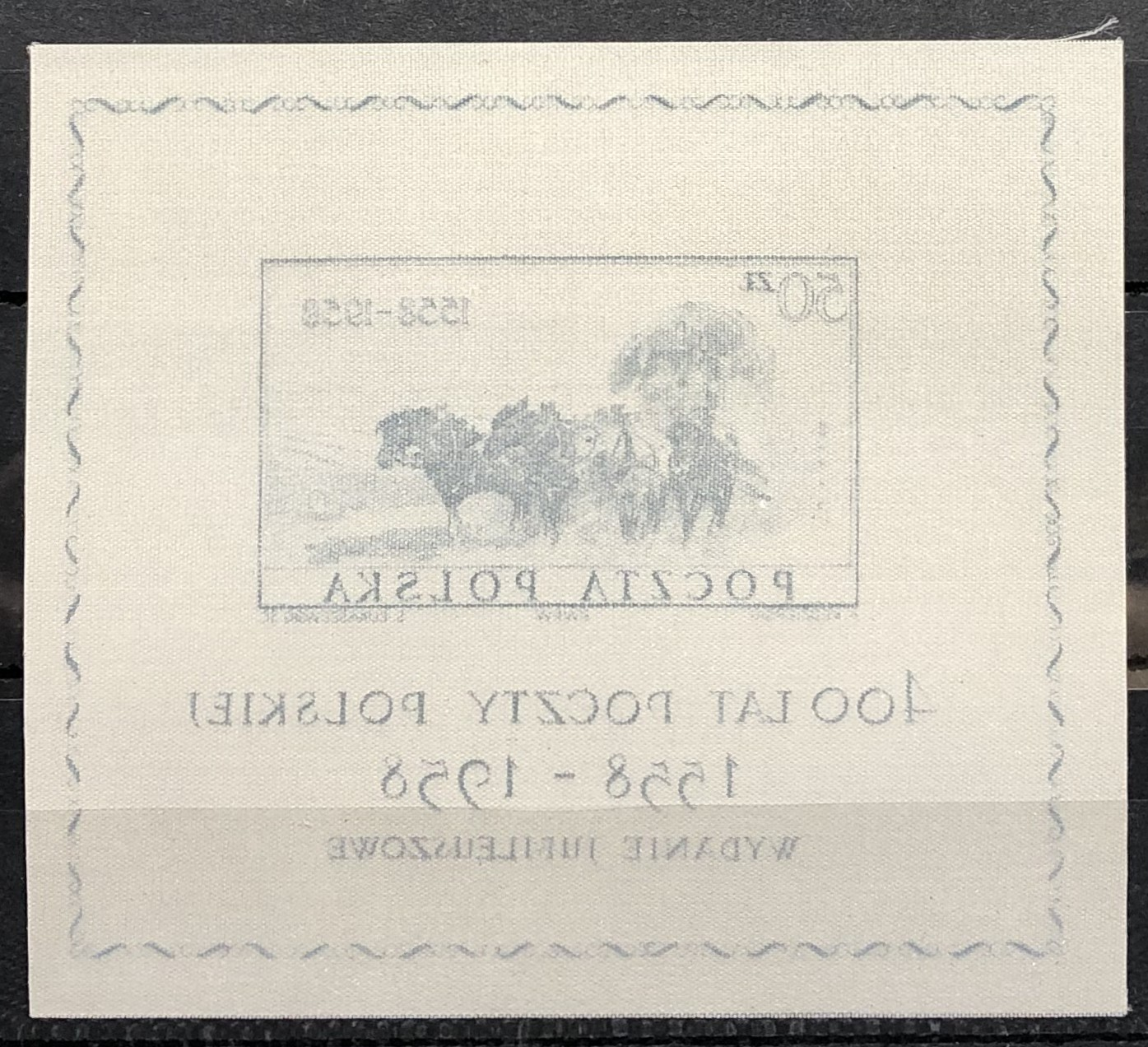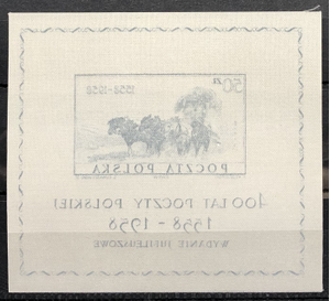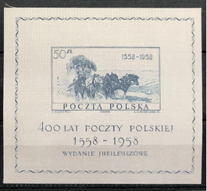 400th Anniversary of the Polish posts, 1958. Souvenir sheet printed on silk.