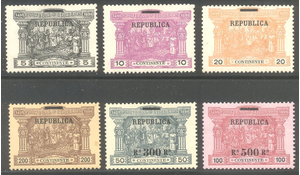 Scott #193-98: 1911 Surcharges Set Centering & Condition: Mint. Fresh. Fine-Very Fine set. Reverse (Gum Side): Original gum (couple disturbed). Hinged. Faults / Imperfections: None The item pictured is the actual item you are purchasing, unless otherwise noted. I also offer an interest-free layaway plan. Ask me about it!" All items will be mailed a day or two after payment is received. --------------------------------------------------------------------------------