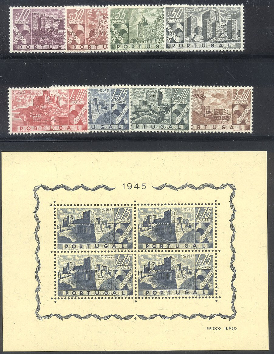 Scott #662-669 + 669a: 1946 Castles Set Plus S/S Centering & Condition: Mint. Fresh. Fine-Very Fine set. Reverse (Gum Side): Original gum). Never Hinged. Faults / Imperfections: None The item pictured is the actual item you are purchasing, unless otherwise noted. I also offer an interest-free layaway plan. Ask me about it!" All items will be mailed a day or two after payment is received. --------------------------------------------------------------------------------