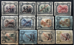 Zebra, Vasco Da Gama's Flagship "San Gabriel," Camels, Giraffe and palms, surcharged, 1921. Complete set of 12.
