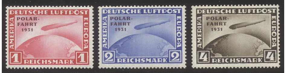Scott #C40-42: 1931 Zeppelin, Polar Flight Set Centering & Condition: Mint. Fresh. Fine-Very Fine set. Reverse (Gum Side): Original gum. Hinged. Faults / Imperfections: None The item pictured is the actual item you are purchasing, unless otherwise noted. I also offer an interest-free layaway plan. Ask me about it!" All items will be mailed a day or two after payment is received. --------------------------------------------------------------------------------