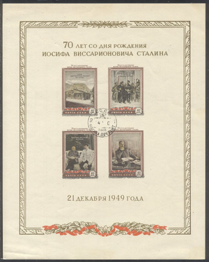 Scott #1325: 1949 Stalin S/S Centering & Condition: Used. Very Fine sheet. Reverse (Gum Side): Original gum. Never Hinged. Faults / Imperfections: Light bend lower left cornere The item pictured is the actual item you are purchasing, unless otherwise noted. I also offer an interest-free layaway plan. Ask me about it!" All items will be mailed a day or two after payment is received. --------------------------------------------------------------------------------