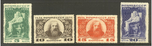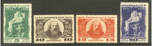 Scott #536-39: 1934 Mendellev Set Centering & Condition: Mint. Fresh. Fine-Very Fine set. Reverse (Gum Side): Original gum. Never Hinged. #537-38 light pencil marks. Faults / Imperfections: None The item pictured is the actual item you are purchasing, unless otherwise noted. I also offer an interest-free layaway plan. Ask me about it!" All items will be mailed a day or two after payment is received. --------------------------------------------------------------------------------
