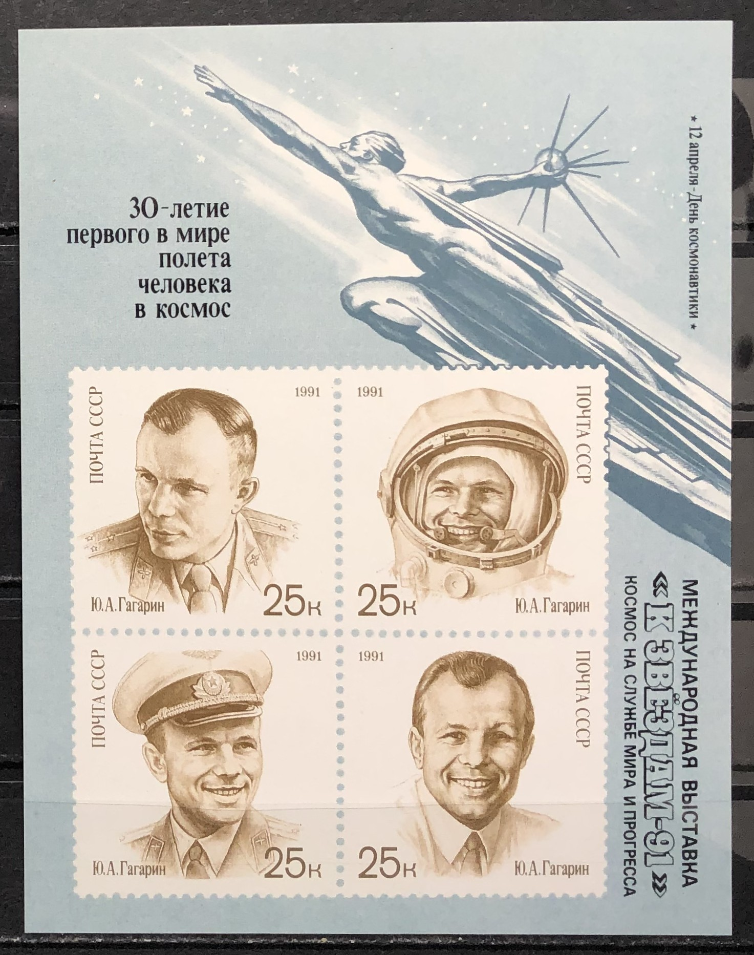 Yuri A. Gagarin, 1991. Souvenir sheet inscribed.