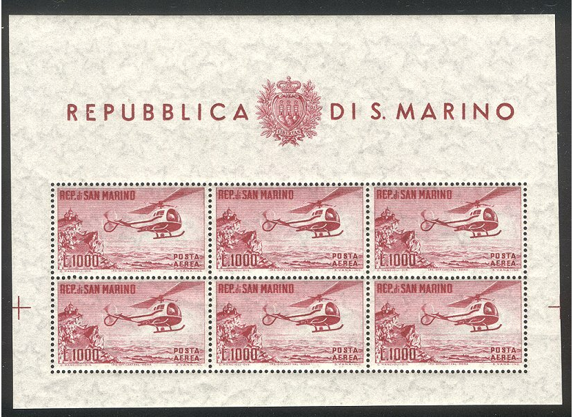 Scott #C117: 1961 1000 l Helicopter S/S Centering & Condition: Mint. Fresh. Very Fine sheet. Reverse (Gum Side): Original gum. Never Hinged. Faults / Imperfections: None The item pictured is the actual item you are purchasing, unless otherwise noted. I also offer an interest-free layaway plan. Ask me about it!" All items will be mailed a day or two after payment is received. ![]() ![]() ![]() ![]() ![]() --------------------------------------------------------------------------------