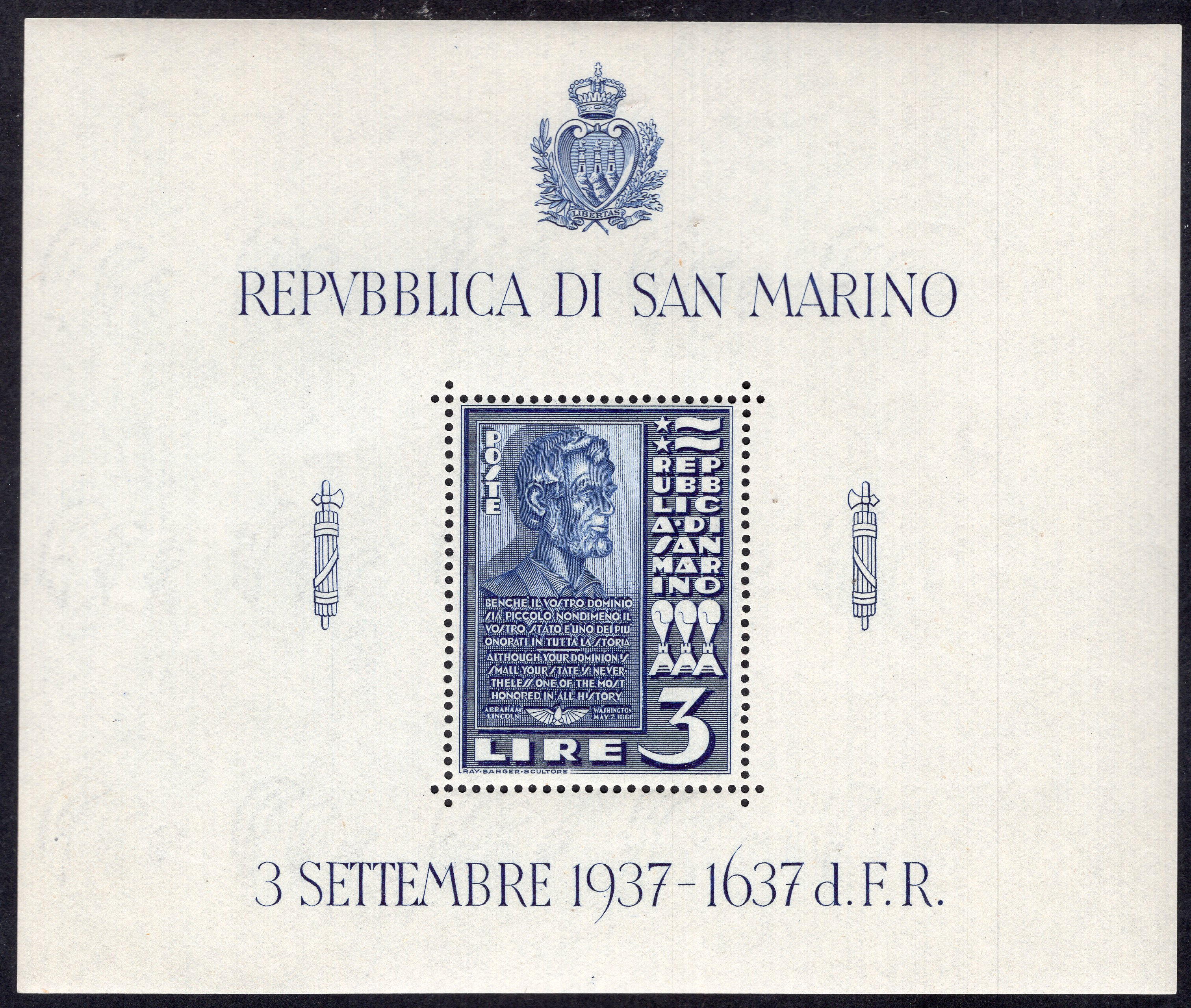 San Marino Scott 186. Souvenir sheet. Mint. Never hinged.