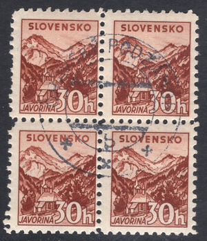Slovakia Scott 49A. Block of 4. Used. Perforation 10.5. 4