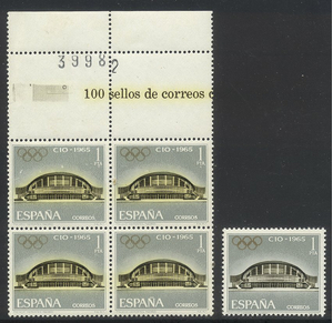 Scott #1315 var: 1965 1p Sports Palace w/ Color Error Centering & Condition: Mint. Fresh. Very Fine Block with Yellow color added (that Reverse (Gum Side): Original gum. Never Hinged. Faults / Imperfections: None The item pictured is the actual item you are purchasing, unless otherwise noted. I also offer an interest-free layaway plan. Ask me about it!" All items will be mailed a day or two after payment is received. ![]() ![]() ![]() --------------------------------------------------------------------------------