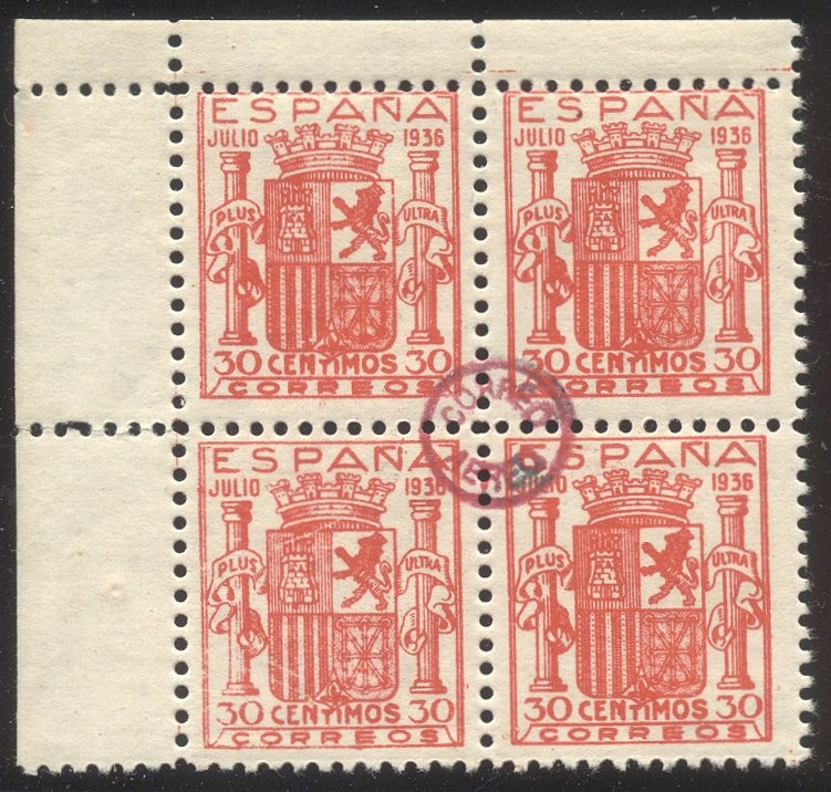 Scott #617 var: 1936 30c Arms, Red w/ Ovpt Centering & Condition: Mint. Fresh. Fine-Very Fine BLOCK w/ "Correo Aereo in Circle" Overprint. Reverse (Gum Side): Original gum. Never Hinged. Faults / Imperfections: None The item pictured is the actual item you are purchasing, unless otherwise noted. I also offer an interest-free layaway plan. Ask me about it!" All items will be mailed a day or two after payment is received. ![]() ![]() ![]() --------------------------------------------------------------------------------