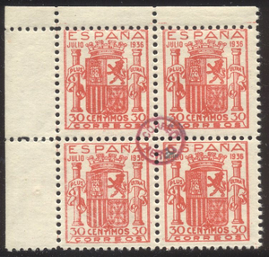 Scott #617 var: 1936 30c Arms, Red w/ Ovpt Centering & Condition: Mint. Fresh. Fine-Very Fine BLOCK w/ "Correo Aereo in Circle" Overprint. Reverse (Gum Side): Original gum. Never Hinged. Faults / Imperfections: None The item pictured is the actual item you are purchasing, unless otherwise noted. I also offer an interest-free layaway plan. Ask me about it!" All items will be mailed a day or two after payment is received. --------------------------------------------------------------------------------