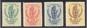Scott #668-71: 1938 Falange Set Centering & Condition: Mint. Fresh. Fine-Very Fine set. Reverse (Gum Side): Original gum. Never Hinged. Faults / Imperfections: None The item pictured is the actual item you are purchasing, unless otherwise noted. I also offer an interest-free layaway plan. Ask me about it!" All items will be mailed a day or two after payment is received. --------------------------------------------------------------------------------