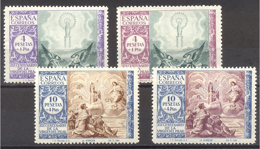 Scott #B121-22: 1940 Virgin of the Pillar High Vals Centering & Condition: Mint. Fresh. Very Fine. Includes the alternate colors. Reverse (Gum Side): Original gum. Never Hinged. Faults / Imperfections: None The item pictured is the actual item you are purchasing, unless otherwise noted. I also offer an interest-free layaway plan. Ask me about it!" All items will be mailed a day or two after payment is received. -------------------------------------------------------------------------------- Please click any of the following to read: |