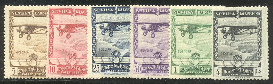 Scott #C6-11: 1929 Seville Airmail Set Centering & Condition: Mint. Fresh. Fine-Very Fine set. Reverse (Gum Side): Original gum. Never Hinged. Faults / Imperfections: None The item pictured is the actual item you are purchasing, unless otherwise noted. I also offer an interest-free layaway plan. Ask me about it!" All items will be mailed a day or two after payment is received. --------------------------------------------------------------------------------