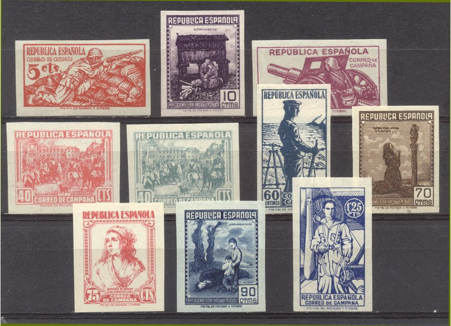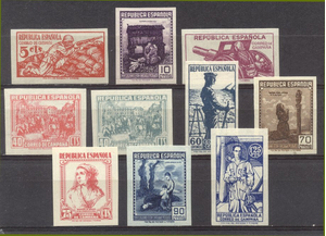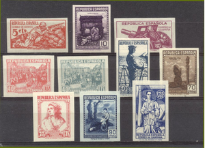 Edifil #NE46-55: 1939 Correo de Campana, Imperf Set Centering & Condition: Mint. Fresh. Very Fine set. Reverse (Gum Side): Original gum. Never Hinged. Faults / Imperfections: None The item pictured is the actual item you are purchasing, unless otherwise noted. I also offer an interest-free layaway plan. Ask me about it!" All items will be mailed a day or two after payment is received. --------------------------------------------------------------------------------