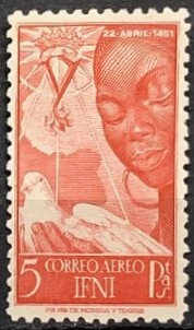 500th Anniversary of the Birth of Queen Isabella I of Spain. Woman holding dove, 1951. Single.