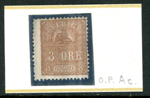 Sweden 1865 3 Reddish Brown Sitting Lion Type 1 Scott #13c Facit 14Ac Mint R74