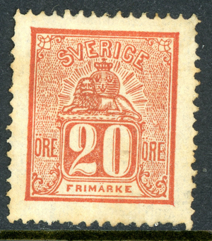 Sweden 1866 20 Ore Vermillion Sitting Lion Scott #16 Facit 16 Mint R81