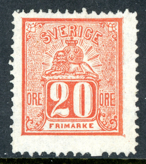 Sweden 1869 20 Ore Brick Red Sitting Lion Scott #16v Facit 16d Mint R82