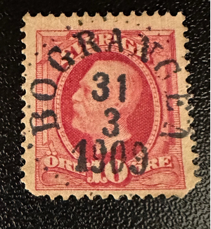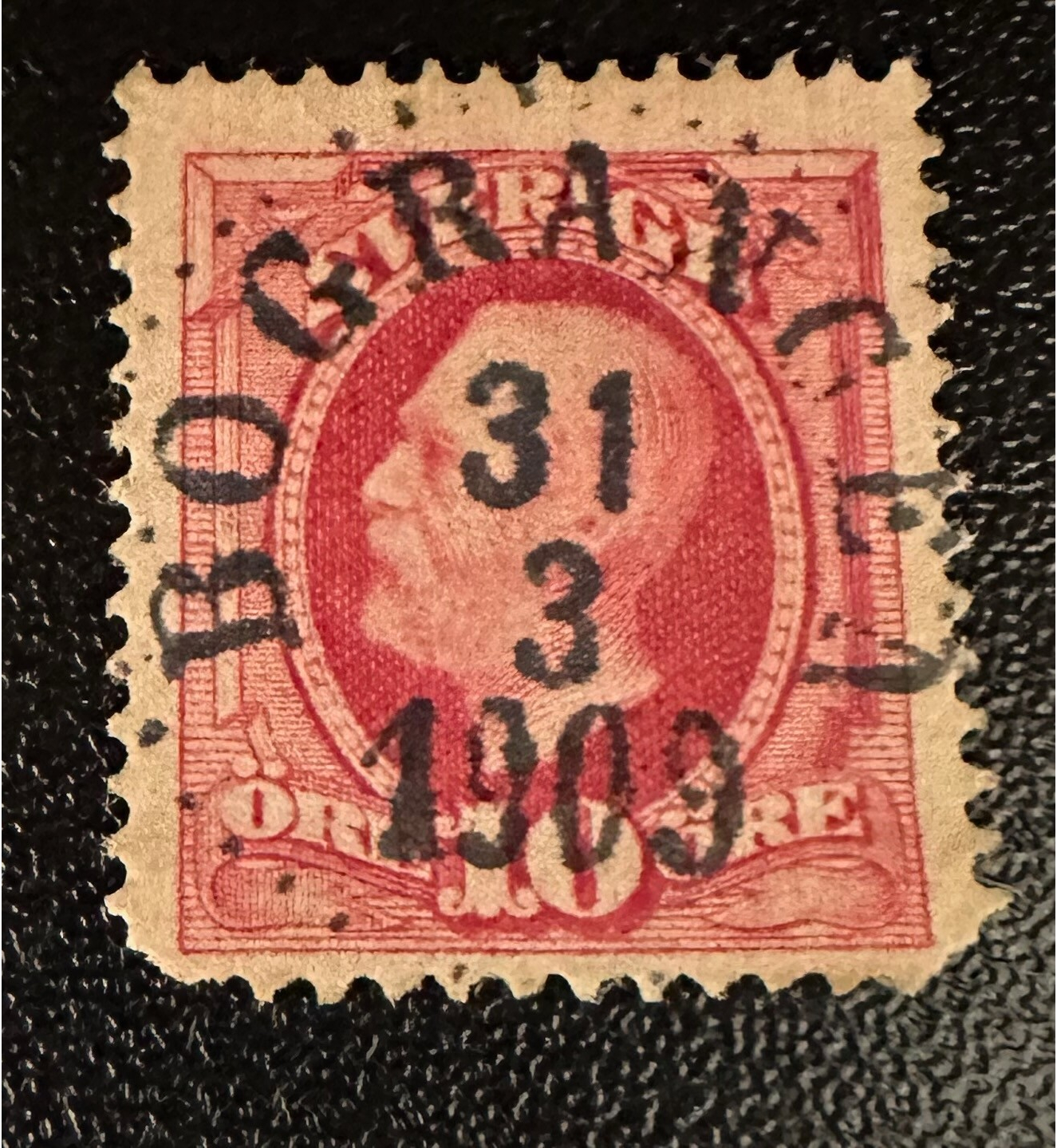 King Oscar II 10 ore SG: 47. clear cancellation 1909, Bograngen - town in Sweden. Lightly hinged