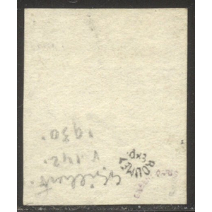 SWITZERLAND #31 Used w/ Cert - 1855 1fr Lavender, Yel Thread