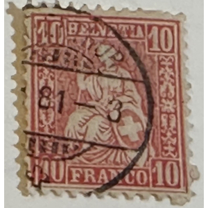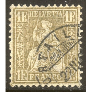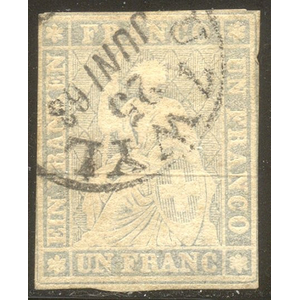 SWITZERLAND #31 Used - 1855 1fr Lavender w/ Yellow Thread