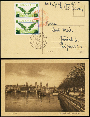 1929 Graf Zeppelin Switzerland to Germany Picture Postcard - Stuart Katz