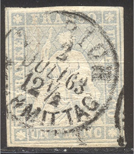 Scott #31: 1855 1fr Lavender w/ Yellow Thread Centering & Condition: Used. Good color. Fine-Very Fine with a nice CDS. Reverse (Gum Side): N/A Faults / Imperfections: None The item pictured is the actual item you are purchasing, unless otherwise noted. I also offer an interest-free layaway plan. Ask me about it!" All items purchased will be mailed a day or two after payment is received. -------------------------------------------------------------------------------- Please click any of the following to read: |