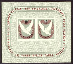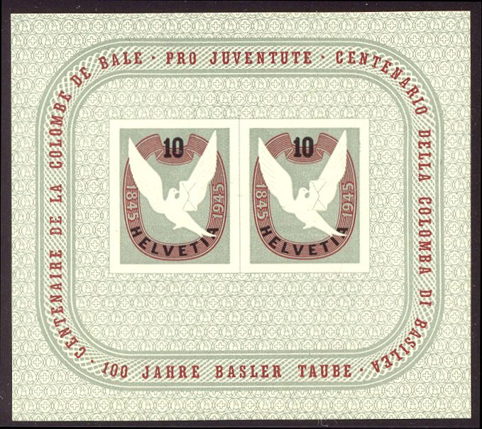 Scott #B144: 1945 Basel Dove S/S Centering & Condition: Mint. Fresh. Very Fine sheet. Reverse (Gum Side): Original gum. Never Hinged. Faults / Imperfections: None The item pictured is the actual item you are purchasing, unless otherwise noted. I also offer an interest-free layaway plan. Ask me about it!" All items will be mailed a day or two after payment is received. ![]() ![]() ![]() --------------------------------------------------------------------------------