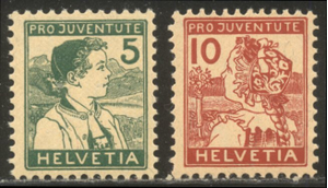 Scott #B2-3: 1915 Pro Juventute Set Centering & Condition: Mint. Fresh. Fine-Very Fine set. Reverse (Gum Side): Original gum. Never Hinged. Faults / Imperfections: None The item pictured is the actual item you are purchasing, unless otherwise noted. I also offer an interest-free layaway plan. Ask me about it!" All items will be mailed a day or two after payment is received. --------------------------------------------------------------------------------