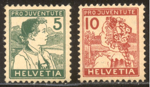 Scott #B2-3: 1915 Pro Juventute Set Centering & Condition: Mint. Fresh. Fine-Very Fine set. Reverse (Gum Side): Original gum. Never Hinged. Faults / Imperfections: None The item pictured is the actual item you are purchasing, unless otherwise noted. I also offer an interest-free layaway plan. Ask me about it!" All items will be mailed a day or two after payment is received. --------------------------------------------------------------------------------