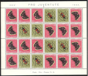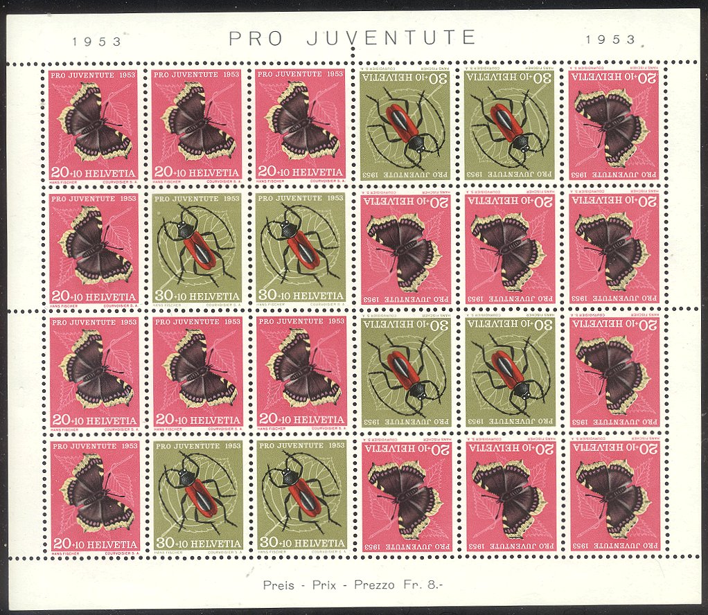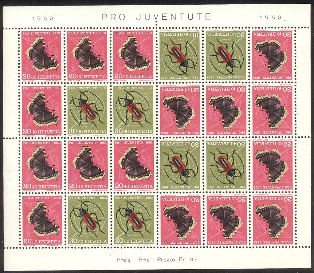 Scott #B229a: 1953 Insects Sheet Centering & Condition: Mint. Fresh. Very Fine sheet. Reverse (Gum Side): Original gum. Never Hinged. Faults / Imperfections: None The item pictured is the actual item you are purchasing, unless otherwise noted. I also offer an interest-free layaway plan. Ask me about it!" All items will be mailed a day or two after payment is received. ![]() ![]() ![]() --------------------------------------------------------------------------------