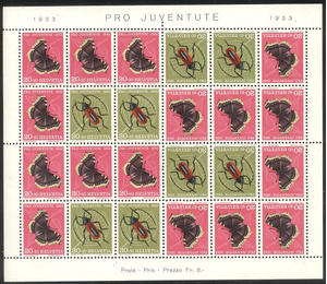 Scott #B229a: 1953 Insects Sheet Centering & Condition: Mint. Fresh. Very Fine sheet. Reverse (Gum Side): Original gum. Never Hinged. Faults / Imperfections: None The item pictured is the actual item you are purchasing, unless otherwise noted. I also offer an interest-free layaway plan. Ask me about it!" All items will be mailed a day or two after payment is received. --------------------------------------------------------------------------------
