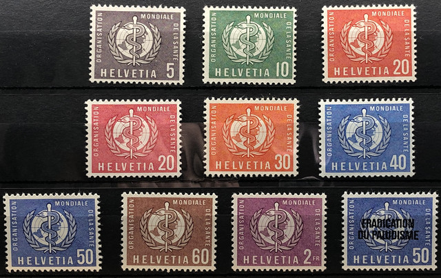 WHO Emblem, WHO drive to eradicate malaria, 1957-62. Complete set of 9 plus 1 single.